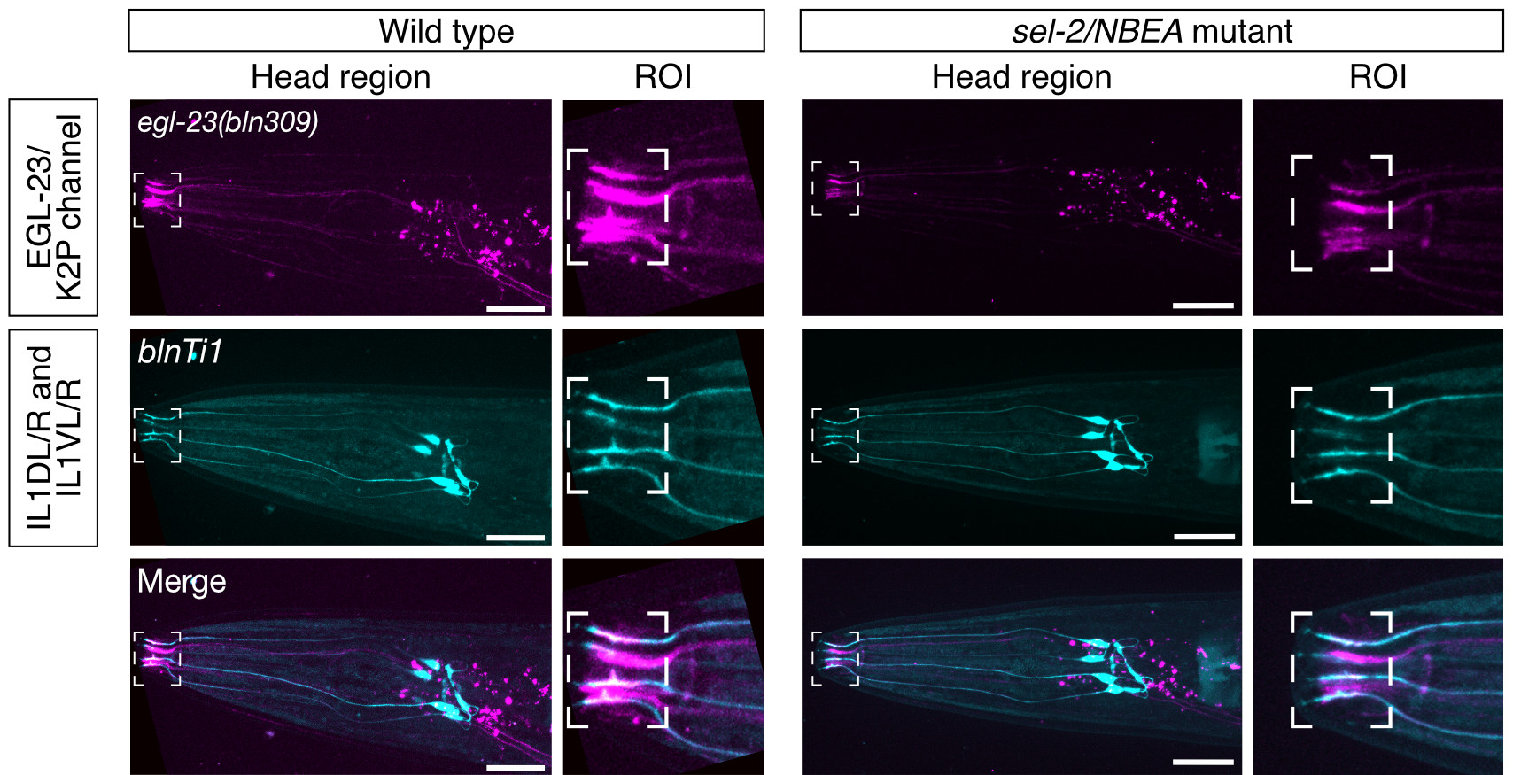 In a collaboration with the NIH’s Undiagnosed Diseases Network, we have for the first time used state-of-the-art gene editing and novel functional assays in the nematode Caenorhabditis elegans, to confirm the molecular diagnosis of a patient carrying a de novo variant (Boulin et al., 2021). Indeed, we demonstrate that mutating this single conserved residue has the same effect as a complete knock-out of Neurobeachin in the worm. Our findings thus open the way to study the functional impact of human genetic variants of Neurobeachin using the powerful genetic tools available in C. elegans.